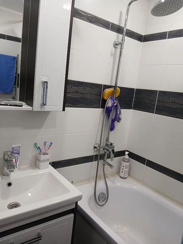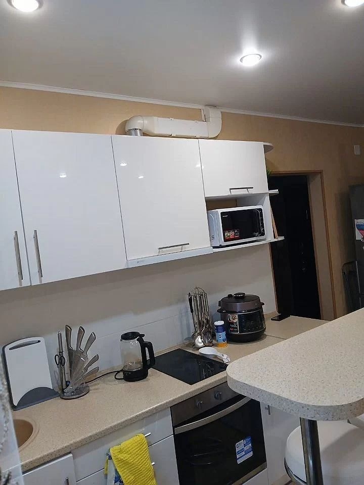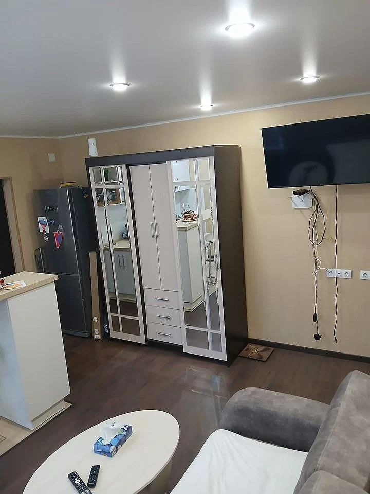 Квартира-студия, с/у раздельный выложен современным кафелем. В квартире остается встроенный кухонный гарнитур и техника, кондиционер, стиральная машинка,диван. Балкон застеклен и облагорожен.Натяжные потолки, на полу паркет и кафельная плитка. Ссылка на объявление: https://ooopnk.ru/sale/saleapartments/167782