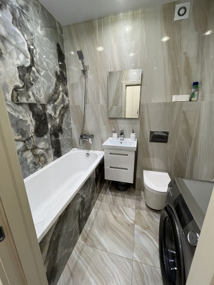 Дом 2023 года. в квартире выполнен современный дорогостоящий ремонт+ установлена современная мебель и техника. с/у совмещен и выложен кафелем.